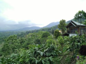バトゥカル山の奥にある寺院は標高も高く、こんな絶景が広がります。寺院へは手前の集落で車を降り、