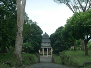 ジャングルの奥にひっそりとボロブドゥールが見えます。