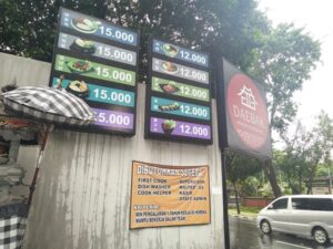 デンパサールのルノン地区にあるデバッ。ビビンバが1万5000ルピア!見間違いかと思っていましたが、