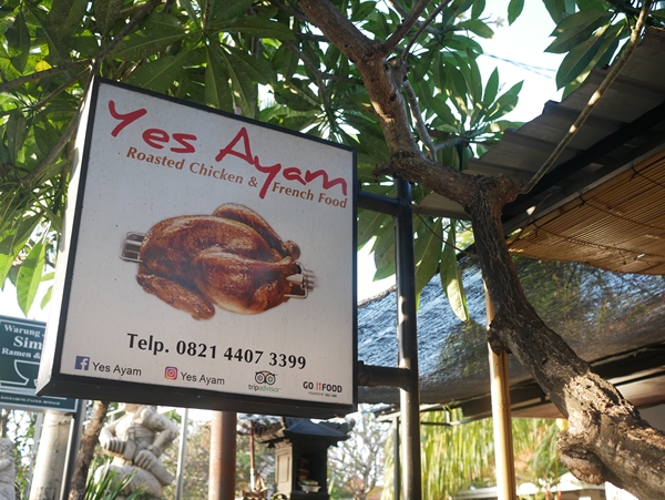 今在住者の間で話題になっているレストランが『Yes Ayam』、サヌールにある鶏料理をいただける小さな