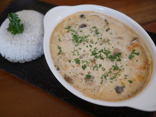 こちらはシーフードのクリーム煮。チキンがメインのお店ですが、ビーフステーキやポークなど、いろいろな