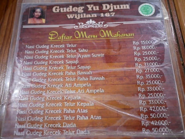 ジョグジャの王宮クラトン近くのウィジラン通りはグデッグ屋さんが集まるグデッグ通り。