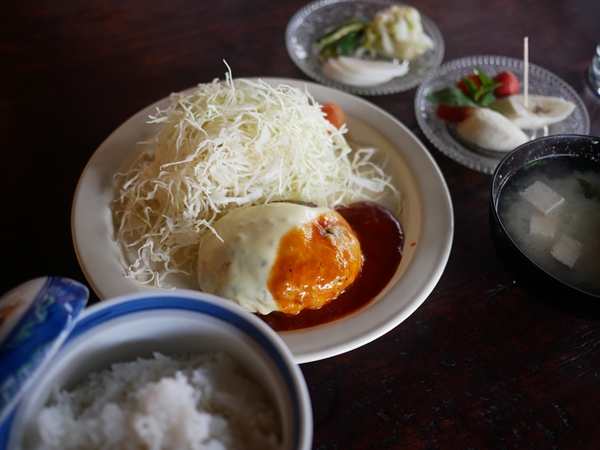 こちらはハンバーグ定食。サイドディッシュも色々ついて満足度が高いです。