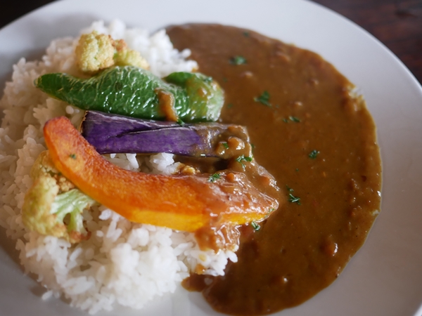 カレーもスパイシーで人気。こちらも大小あります。トッピングのチョイスもできます。