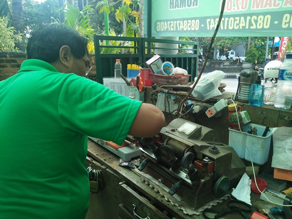 バリの道端でポツポツ見かけるのが、鍵屋さん。鍵のコピーや、なくした鍵を同じように
