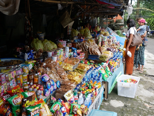 ローカルの沐浴の際は、こうやって出店で買って食べたり、持ってきたお供え物のお下がりを皆で食べたりと、