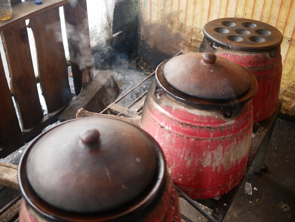 こんな風に素焼きの鍋で焼いていきます。