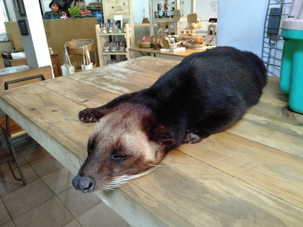 店内にはルワックコーヒーで有名なジャコウネコがいてお迎えしてくれます。
