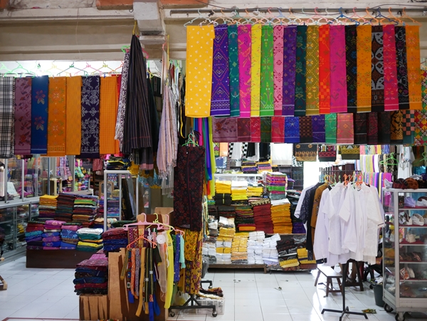 パサール・クルンクンの一部は布市場になっていて、伝統的な布をメインに扱っています。