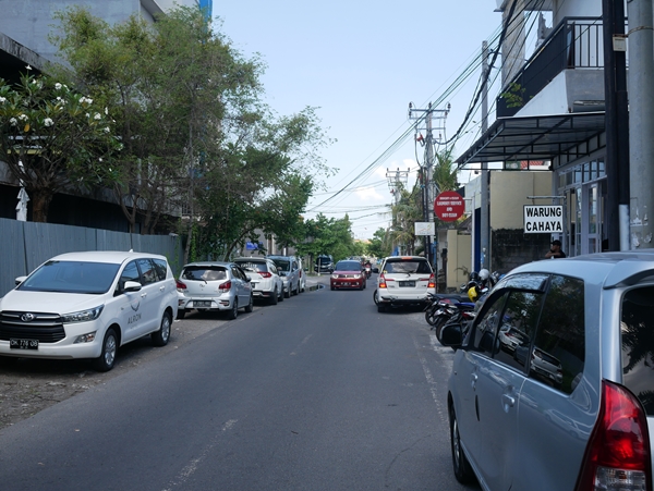 この路上駐車の車は全てワルン・チャハヤのお客さんなんですよ。