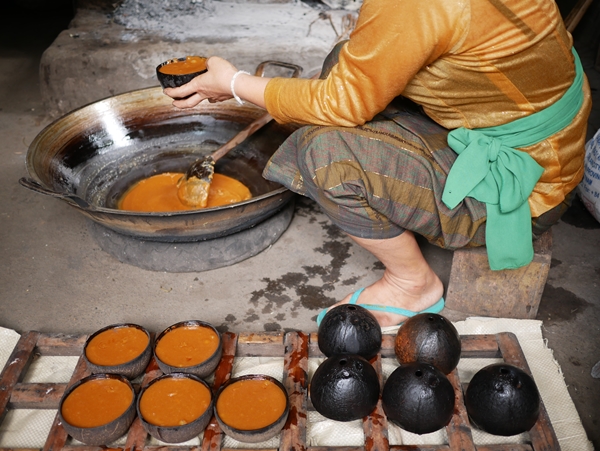 それをココナッツの殻に入れて、冷ましながら固めます。