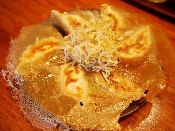 餃子は羽根つきで、トップには茹でもやしも! 豚、鳥、野菜から選べます。