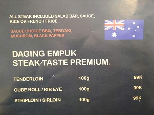 100ℊのお肉のセットで9万9000ルピアからのスタート。お安いですね!