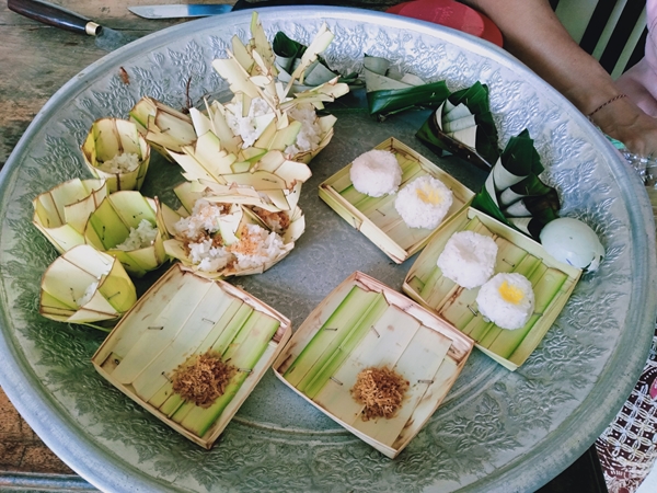 それを聞きながらお供え物づくりを見ているのはとても興味深いです。