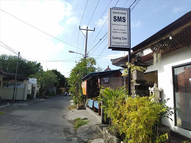Betngandang通りにあるワルンSMSの看板が目印です。