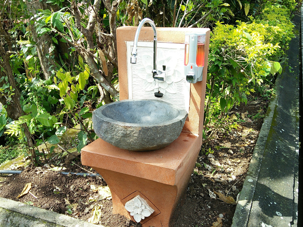門を入ってすぐの場所に、手洗い所が設置されています。